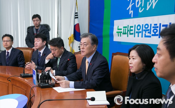 (서울=포커스뉴스) 21일 오전 서울 여의도 국회에서 열린 더불어민주당 뉴파티특별위원회 출범 회의에 참석한 문재인 대표가 인사말을 하고 있다.