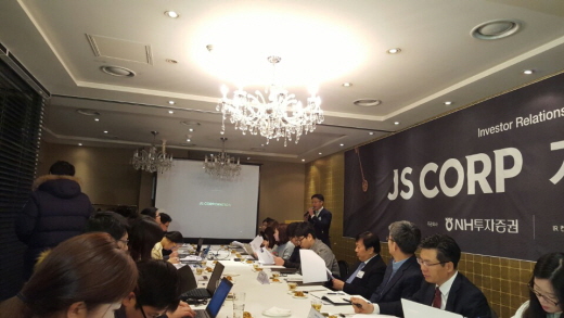 제이에스코퍼레이션은 이번 상장을 위해 328만3132주를 공모한다. 공모 예정가는 1만9000원~2만3000원이다.최용준 제이에스코퍼레이션 CFO가 21일 서울 여의도에서 열린 기자간담회에서 회사 소개를 하고 있다 2016.01.21 최아람 기자