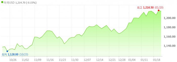 21일 서울 외환시장에서 원·달러 환율은 전 거래일보다 0.3원 하락(원화 가치 상승)한 1213.7원으로 거래를 마감했다.