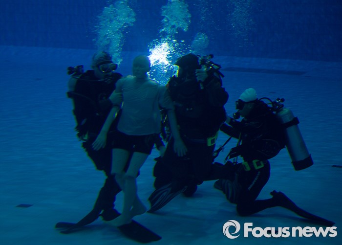 (대전=포커스뉴스) 21일 오후 대전 동구 용운국제수영장에서 충북 영동소방서 구조대원들이 동계 수난사고 인명구조훈련을 실시하고 있다.