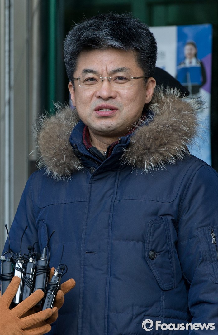 (서울=포커스뉴스) 21일 오후 서울 서초구 서울고등법원 별관에서 열린 법외노조 통보처분 취소소송 항소심을 마친 변성호 전국교직원노동조합 위원장이 취재진을 향해 입장을 밝히고 있다.