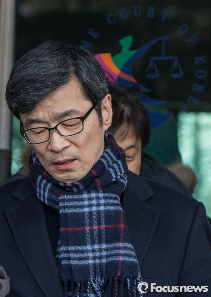 (서울=포커스뉴스) 21일 오후 서울 서초구 서울고등법원 별관에서 열린 법외노조 통보처분 취소소송 항소심 참관을 마친 곽노현 전 서울시 교육감이 무거운 표정을 짓고 있다.