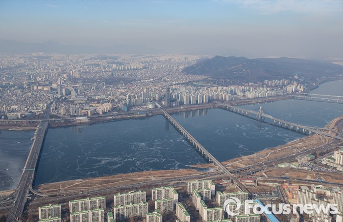 (서울=포커스뉴스) 서울 기온이 영하권에 머무르며 연일 강추위가 이어지고 있는 21일 오후 서울 한강이 얼어 있다.