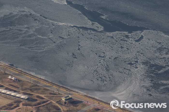 (서울=포커스뉴스) 서울 기온이 영하권에 머무르며 연일 강추위가 이어지고 있는 21일 오후 서울 한강이 얼어 있다.