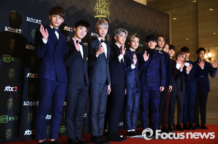 (서울=포커스뉴스) 21일 서울 동대문구 경희대학교 평화의 전당에서 열린 제 30회 골든디스크 시상식에 참석한 아이돌 그룹 세븐틴이 포토타임을 갖고 있다.
