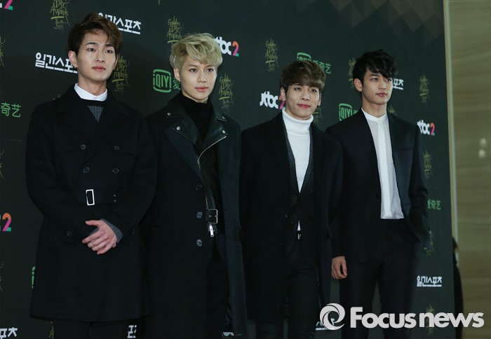 (서울=포커스뉴스) 21일 서울 동대문구 경희대학교 평화의 전당에서 열린 제 30회 골든디스크 시상식에 참석한 아이돌그룹 샤이니의 멤버들이 포토타임을 갖고 있다.