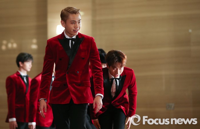 (서울=포커스뉴스) 21일 서울 동대문구 경희대학교 평화의 전당에서 열린 제 30회 골든디스크 시상식에 참석한 아이돌그룹 비투비의 멤버들이 포토타임을 위해 이동하고 있다.