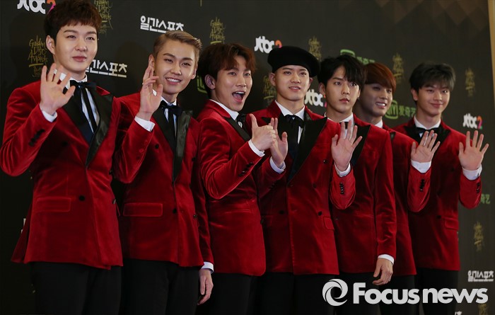 (서울=포커스뉴스) 21일 서울 동대문구 경희대학교 평화의 전당에서 열린 제 30회 골든디스크 시상식에 참석한 아이돌 그룹 비투비의 멤버들이 포토타임을 갖고 있다.
