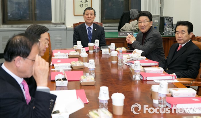 (서울=포커스뉴스) 새누리당 총선기획단장인 황진하(가운데) 사무총장을 비롯한 기획단 위원들이 22일 오전 서울 여의도 국회에서 열린 총선기획단 2차 회의에 참석해 자리에 앉아 있다.