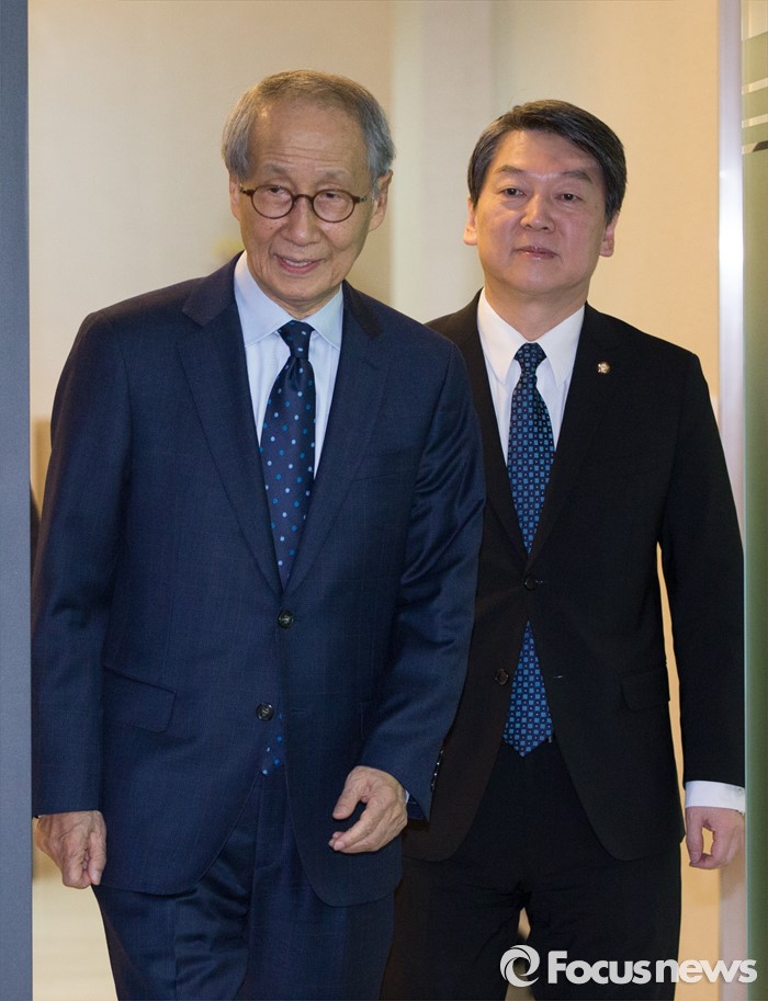 | △ 안철수와 함께 기자회견장 들어서는 윤여준 |
