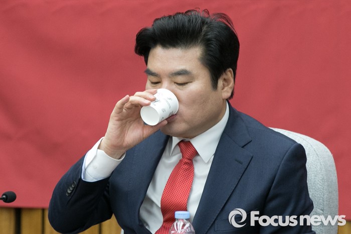 (서울=포커스뉴스) 원유철 새누리당 원내대표가 22일 오전 서울 여의도 국회에서 열린 원내대책회의에 참석해 물을 마시고 있다.