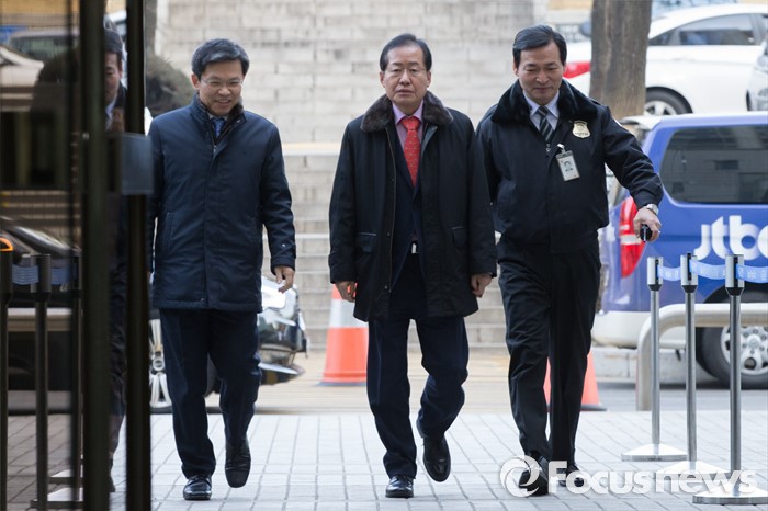 (서울=포커스뉴스) 고 성완종 전 경남기업 회장에게서 불법정치자금을 받은 혐의로 기소된 홍준표 경남지사가 22일 오전 서울 서초구 서울중앙지방법원에서 열린 2차 공판에 출석하기 위해 들어서고 있다.