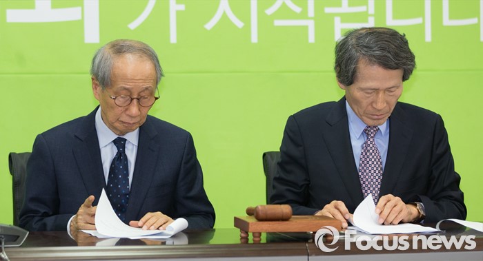 | △ 나란히 앉은 윤여준과 한상진 |