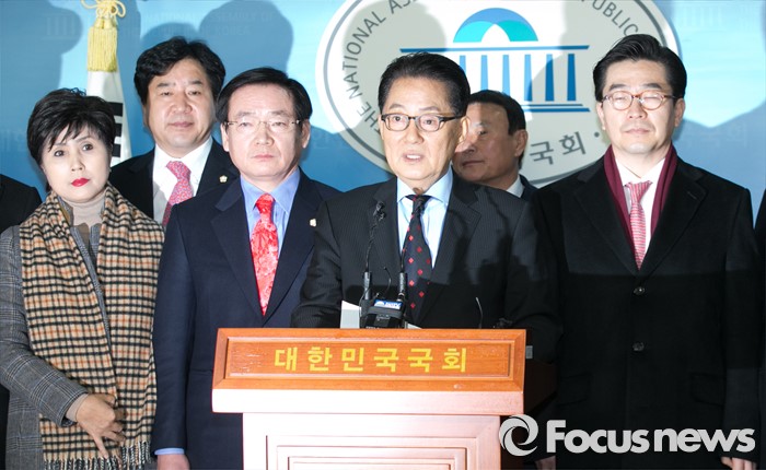 (서울=포커스뉴스) 박지원 더불어민주당 의원이 22일 오전 서울 여의도 국회 정론관에서 탈당 기자회견을 하고 있다.