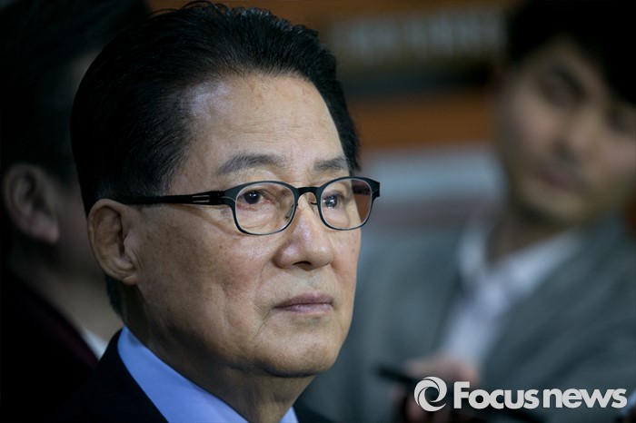 (서울=포커스뉴스) 박지원 더불어민주당 의원이 22일 오전 서울 여의도 국회 정론관에서 탈당 기자회견을 마친 뒤 취재진 질문에 답하고 있다.