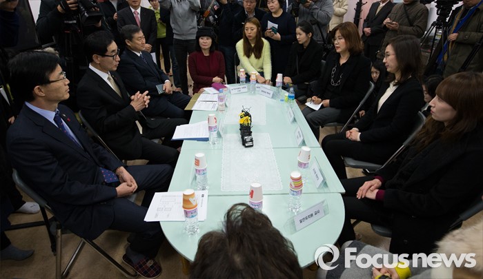(서울=포커스뉴스) 이준식(왼쪽 두번째) 사회부총리 겸 교육부장관이 22일 오전 서울 용산구 일민유치원에서 유치원과 어린이집 관계자 및 학부모와 누리과정 교육비 지원에 대한 간담회를 갖고 있다.