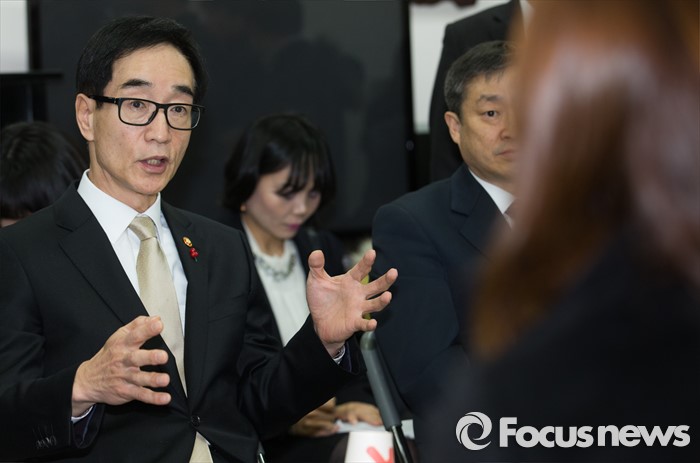 (서울=포커스뉴스) 이준식(왼쪽) 사회부총리 겸 교육부장관이 22일 오전 서울 용산구 일민유치원에서 유치원과 어린이집 관계자 및 학부모와 누리과정 교육비 지원에 대한 간담회를 갖고 있다.