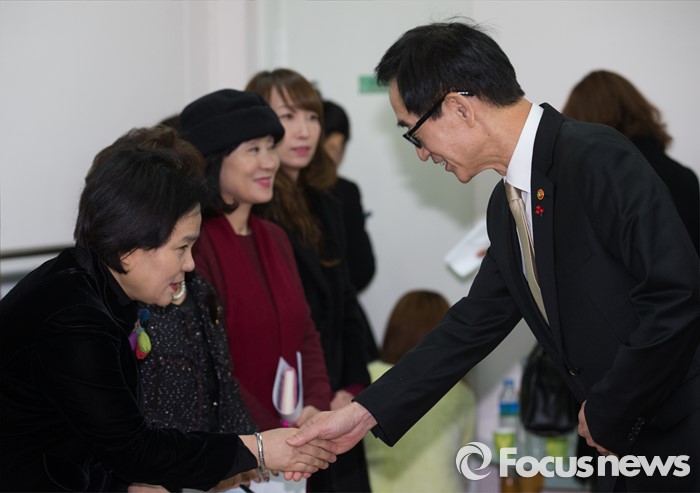 (서울=포커스뉴스) 이준식 사회부총리 겸 교육부장관이 22일 오전 서울 용산구 일민유치원에서 유치원과 어린이집 관계자 및 학부모과 누리과정 교육비 지원에 대한 간담회 전 참석자와 인사하고 있다.