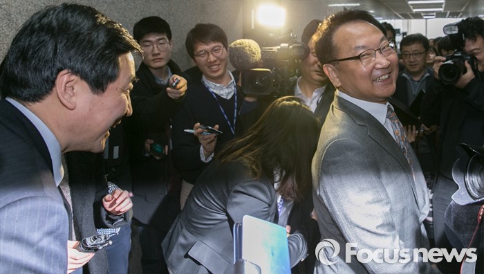 (서울=포커스뉴스) 유일호(오른쪽) 경제부총리 겸 기획재정부 장관이 22일 오전 서울 여의도 국회를 방문해 이종걸 더불어민주당 원내대표와 비공개 면담한 뒤 나서고 있다.