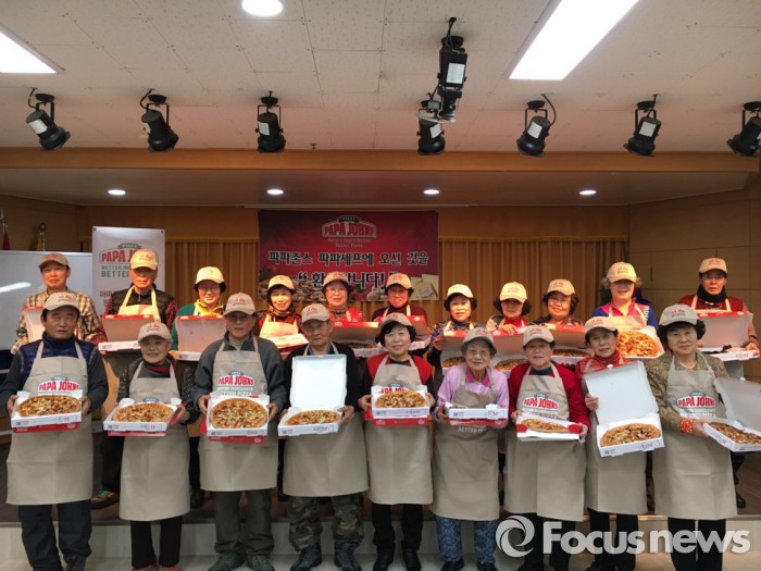 (서울=포커스뉴스) 피자 브랜드 파파존스는 지난 20일 서울시 서대문종합사회복지관에서 지역 어르신들을 위한 피자 나눔 행사를 진행했다.