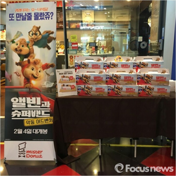 (서울=포커스뉴스) 미스터도넛은 오는 2월4일 개봉하는 영화 ‘앨빈과 슈퍼밴드: 악동 어드벤처’와 마케팅 제휴를 맺고 관련 프로모션을 진행한다.