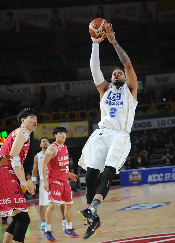 KCC는 22일 창원실내체육관에서 열린 LG와의 경기에서 83-76으로 승리했다. KCC는 연승을 달리며 26승18패로 4위 삼성(24승18패)과의 간격을 1경기 차로 늘렸다. 이번 시즌 LG와의 상대전적에서도 3승2패로 앞서게 됐다. 반면 LG는 14승28패가 됐다. 그나마 이날 전자랜드가 오리온에게 패해 꼴찌 추락은 면하게 됐다.