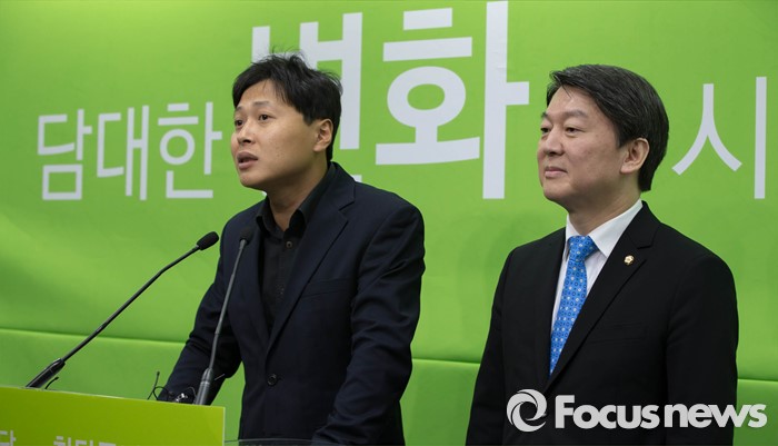 (서울=포커스뉴스) 24일 오전 서울 마포구 국민의당 당사에서 곽선우(왼쪽) 변호사가 국민의당 입당을 알리며 발언을 하고 있다.