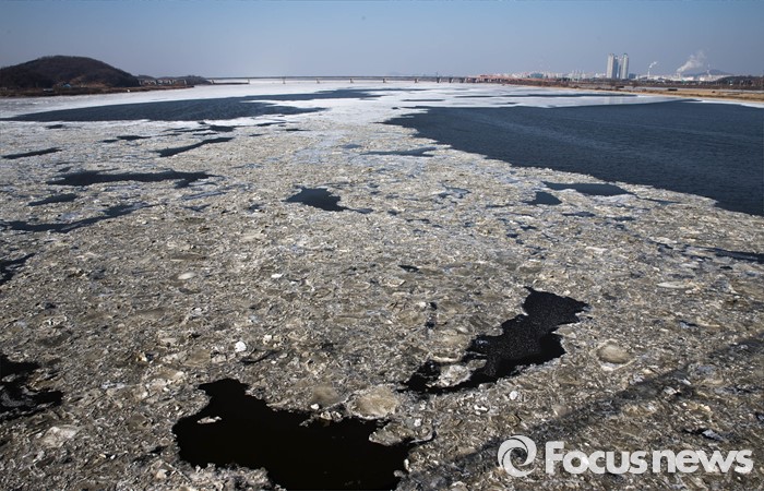 (고양=포커스뉴스) 서울 최저기온이 영하 18도, 체감온도 영하 30도를 기록한 30일 오후 경기도 고양시 행주대교 부근에서 바라본 한강이 얼음으로 뒤덮혀 있다.