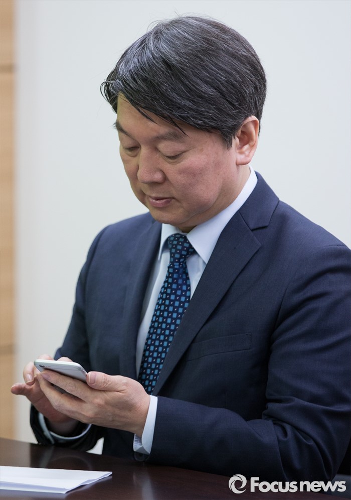 (서울=포커스뉴스)국민의당(가칭) 확대 기획조정회의가 25일 오전 서울 마포구 당사에서 열리고있는 가운데 안철수 의원이 문자를 보내고 있다.
