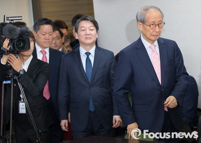 (서울=포커스뉴스) 안철수 인재영입위원장과 윤여준 공동창준위원장이 25일 오전 서울 마포구 당사에서 열린 확대 기획조정회의에 참석하고 있다.
