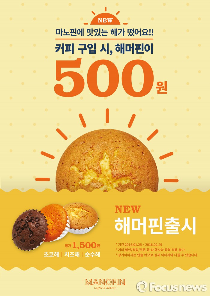 신제품 출시를 기념해 오는 2월29일까지 커피음료와 해머핀을 함께 구매 하면 1000원을 할인해주는 프로모션을 진행한다.
