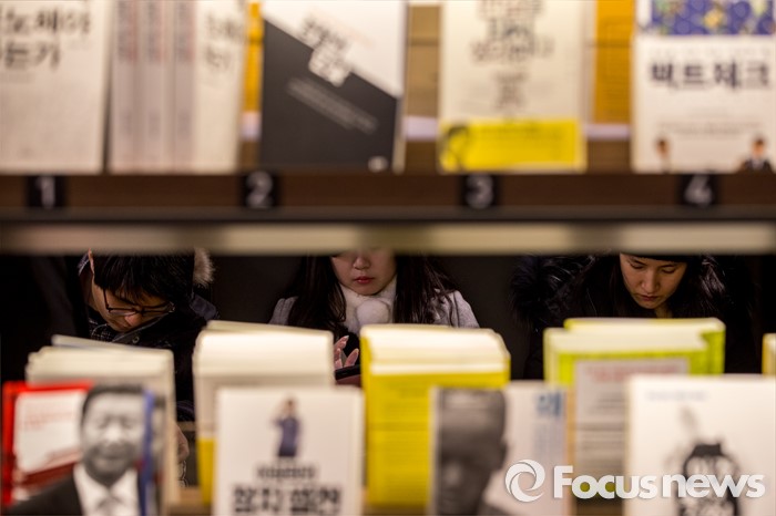 (서울=포커스뉴스) 서울 한 낮 기온이 영하권에 머물며 연일 강추위가 이어지고 있는 25일 오후 서울 종로구 교보문고 광화문점을 찾은 고객들이 추위를 피하며 독서 하고 있다.
