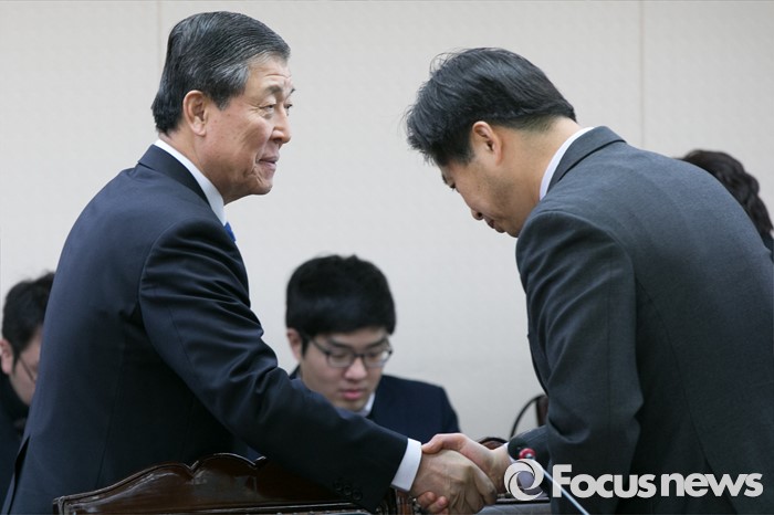 (서울=포커스뉴스) 황진하(왼쪽) 새누리당 사무총장이 25일 오후 서울 여의도 새누리당사에서 열린 전국 시도당위원장회의에 참석하고 있다.