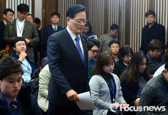(서울=포커스뉴스) 정의화 국회의장이 25일 오후 서울 여의도 국회에서 20대 총선 불출마 선언 및 국회 선진화법 개정안에 대한 중재안 발표 기자회견을 위해 입장하고 있다.