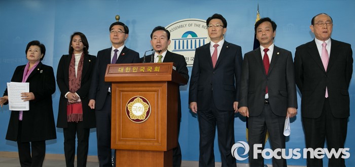 (서울=포커스뉴스) 이기권 고용노동부 장관과 이인제 새누리당 노동선진화특위원장 등 의원들이 25일 오후 서울 여의도 국회 정론관에서 노동개혁 2대 지침(일반해고 지침, 취업규칙 지침) 설명회를 마친 뒤 브리핑을 하고 있다.