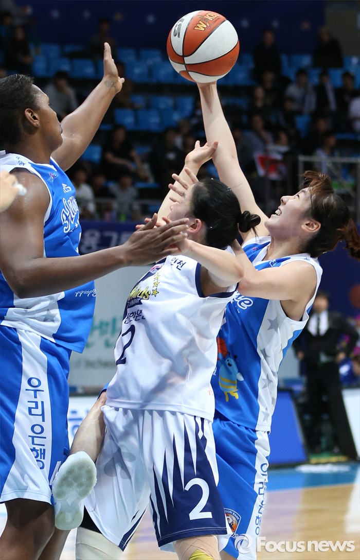 우리은행은 25일 인천도원체육관에서 열린 신한은행과의 경기에서 68-59로 이겼다. 21승3패를 기록하며 1위 자리를 굳게 지킨 우리은행은 정규리그 우승 매직넘버를 4로 줄였다. 신한은행은 11승13패로 4위에 머물렀다. 3위 삼성생명(12승12패)와 1경기 차로 벌어졌다.