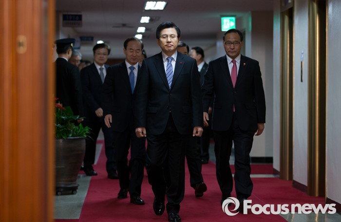 (서울=포커스뉴스) 황교안 국무총리와 국무위원들이 26일 오전 서울 종로구 정부서울청사에서 국무회의에 참석하기 위해 입장하고 있다.