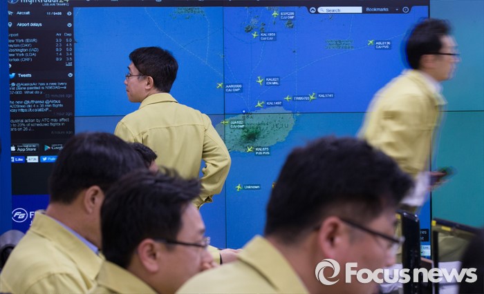 (세종=포커스뉴스) 26일 오전 세종시 정부세종청사 국토교통부 제주공항체류여객 비상수송대책본부에서 관계자들이 제주도 인근 운항상황을 점검하고 있다.