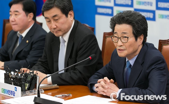(서울=포커스뉴스) 이목희 더불어민주당 정책위의장이 26일 오전 서울 여의도 국회에서 열린 원내대책회의에 참석해 모두발언을 하고 있다.