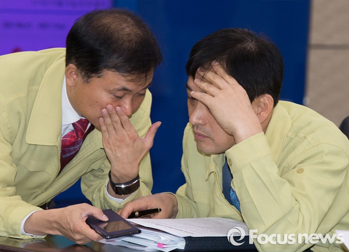 (세종=포커스뉴스) 26일 오전 세종시 정부세종청사 국토교통부 제주공항체류여객 비상수송대책본부에서 관계자들이 제주도 인근 운항상황을 점검하고 있다.