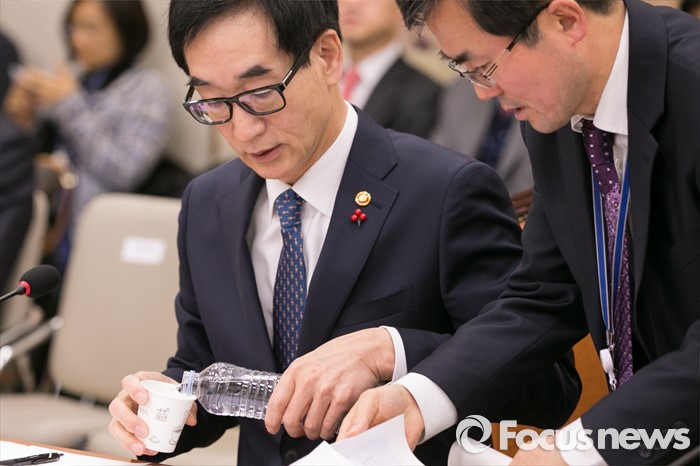(서울=포커스뉴스) 이준식(왼쪽) 사회부총리 겸 교육부 장관이 26일 오전 서울 여의도 국회에서 열린 교육문화체육관광위원회 전체회의에 출석해, 직원과 논의하고 있다. 이날 국회 교문위 전체회의는 교육부로부터 누리과정과 아동학대 현황을 보고받고 대책을 논의한다.