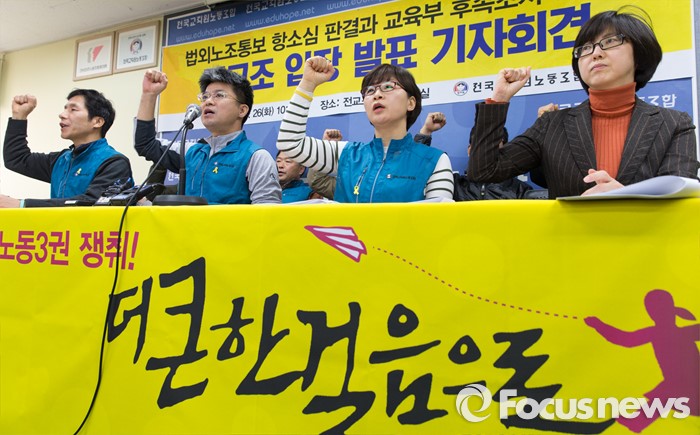 (서울=포커스뉴스) “전국교직원노동조합(이하 전교조)에 대한 항소심의 법외노조 판결은 정부 탄압에 공조한 재판부의 사법폭력이다”