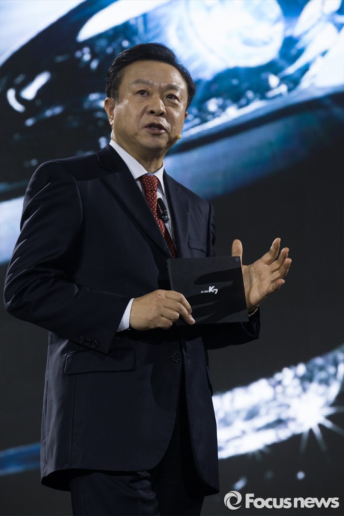 (서울=포커스뉴스) 26일 오전 서울 강남구 그랜드 인터컨티넨탈 서울 파르타스에서 열린 '기아차 올 뉴 K7 신차발표회'에서 황정렬 기아차 PM(프로젝트매니지먼트) 총괄 전무가 발표를 하고 있다.