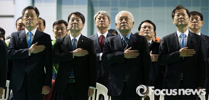 | △ 국민의례하는 안철수, 김한길, 천정배 |