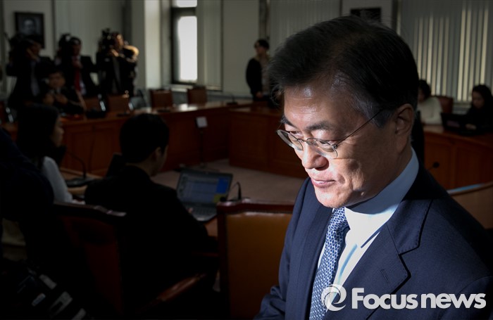(서울=포커스뉴스) 문재인 더불어민주당 대표가 26일 오후 서울 여의도 국회에서 열린 김병기 전 국가정보원 인사처장 인재영입 기자회견에 참석한 뒤 퇴장하고 있다.