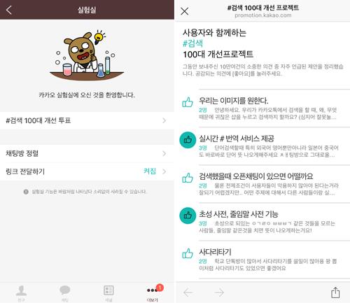 카카오는 27일 지난해 11월부터 진행해온 샵검색 개선 사항에 대한 사용자 의견 접수를 마무리짓고, 이 중 100개의 아이디어를 선별해 사용자 투표를 실시한다고 밝혔다. 카카오는 투표 결과를 참고해 적용 우선 순위를 결정할 계획이다. 투표는 의견 접수 때와 동일하게 카카오톡 설정 메뉴 내 '실험실'에서 진행되며, 카카오톡 사용자라면 누구나 참여할 수 있다.