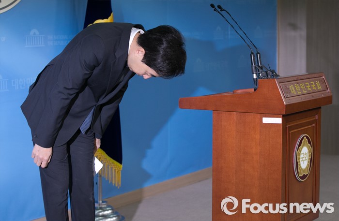 (서울=포커스뉴스) 안철수 의원의 핵심 측근이었던 금태섭 더불어민주당(구 새정치민주연합) 전 대변인이 27일 오전 서울 여의도 국회 정론관에서 20대 총선 서울 강서갑 출마 기자회견을 마친 뒤 인사하고 있다.