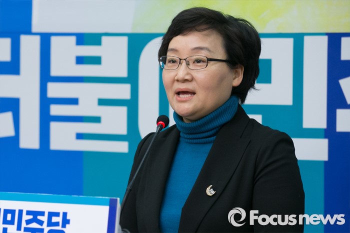(서울=포커스뉴스) 문미옥 한국여성과학기술인지원센터 기획정책실장이 27일 오전 서울 여의도 국회 더불어민주당 대표회의실에서 입당 기자회견을 하고 있다.