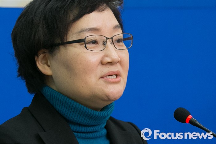 (서울=포커스뉴스) 문미옥 한국여성과학기술인지원센터 기획정책실장이 27일 오전 서울 여의도 국회 더불어민주당 대표회의실에서 입당 기자회견을 하고 있다.