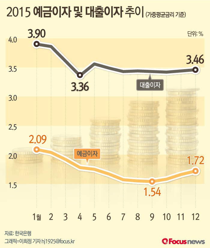 | △ [그래픽] 2015 예금이자 및 대출이자 추이 |